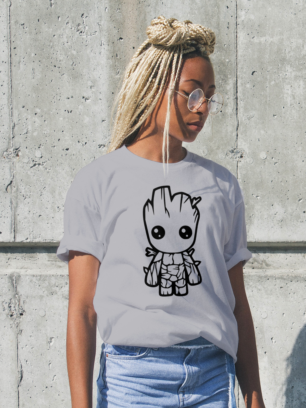Koszulka damska z minimalistycznym nadrukiem inspirowanym jedną z najbardziej uwielbianych postaci świata popkultury – to propozycja dla tych, którzy lubią łączyć luz, styl i odrobinę geekowego uroku.