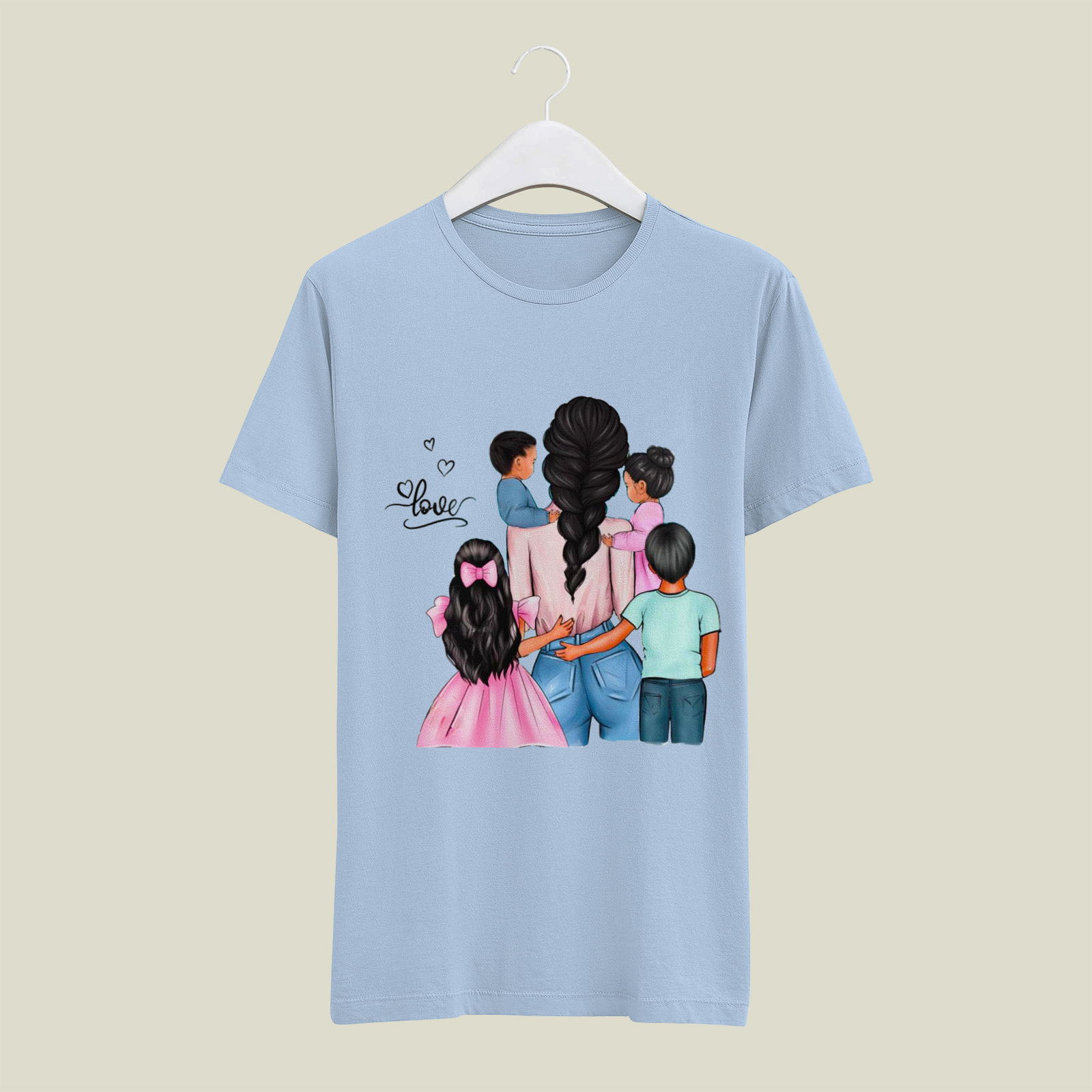 Pełna ciepła i miłości koszulka z grafiką mamy otoczonej czwórką dzieci to wyjątkowy hołd dla codziennych, najważniejszych chwil. 💞