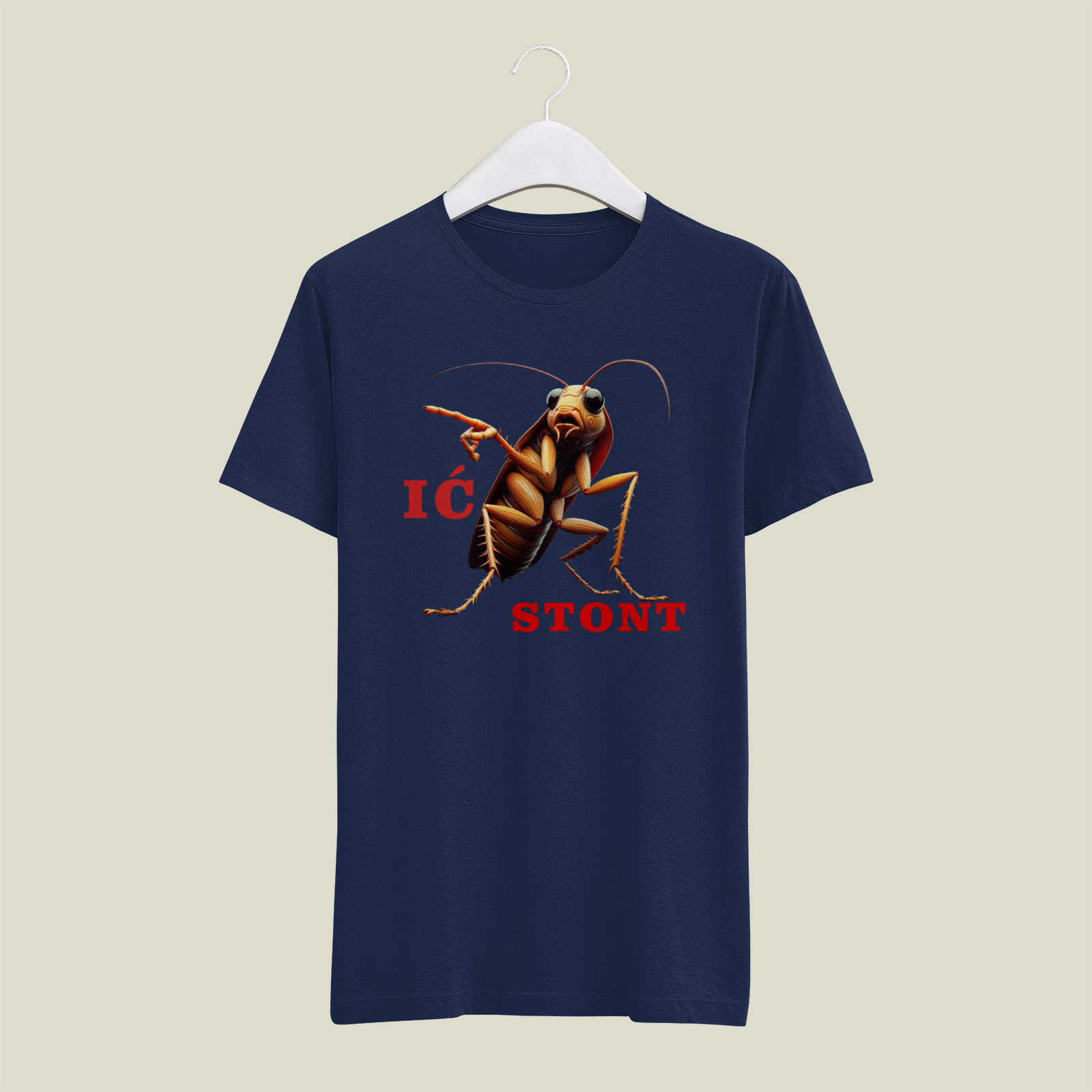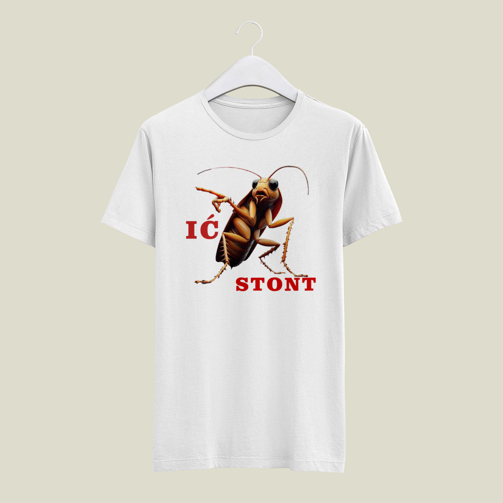 Wyjątkowa koszulka z odważnym i humorystycznym nadrukiem, która z pewnością przyciąga uwagę! Centralny motyw to realistyczna ilustracja karalucha w dynamicznej pozie, wskazującego palcem w bok — idealnie współgrająca z dużym, czerwonym napisem „IĆ STONT”. To połączenie zadziornego stylu i bezkompromisowego przekazu spodoba się osobom z dystansem do siebie i poczuciem humoru. Koszulka doskonała na prezent lub jako niebanalny element codziennej stylówki. Dla tych, którzy nie boją się powiedzieć „co myślą” — z klasą i humorem!