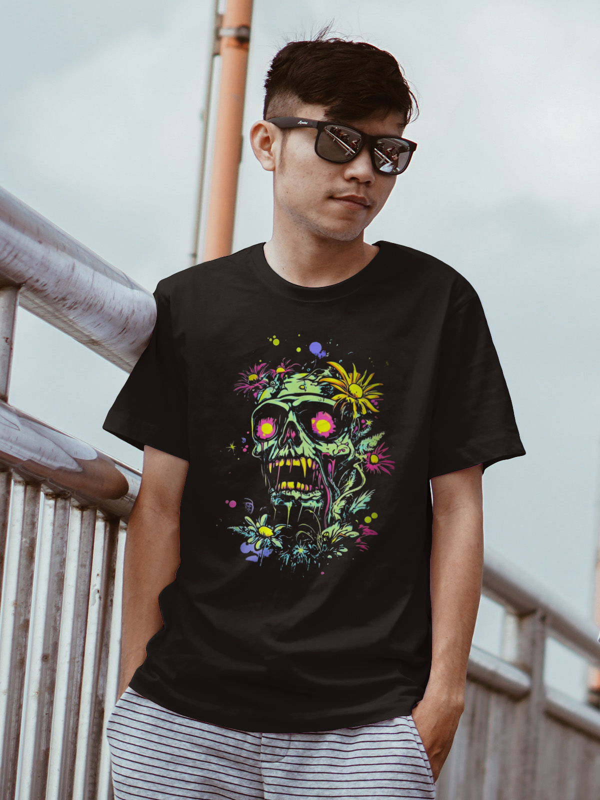 Bo kto powiedział, że zombie nie mają ogrodniczych talentów? 💀🌼 Ta koszulka to połączenie mroku i… miłości do roślinek. Neonowa czaszka, z której wyrastają kwiaty? Klasyka gatunku – trochę straszy, trochę rozczula, a przede wszystkim robi wrażenie. Idealna dla tych, którzy wolą podlewać styl niż konwenanse!